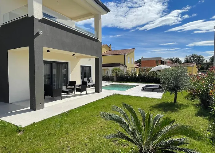 Istarska Vila Villa med 4 sovrum, som ligger ungefär 5 minuters bilfärd från Decumanus ulica, har en terrass med utsikt över trädgården. Villan med 4 badrum, som har utsikt över en utomhuspool, bjuder in gästerna att besöka Acquario di Parenzo, som ligger ungefär 5 minuters bilresa bort.
